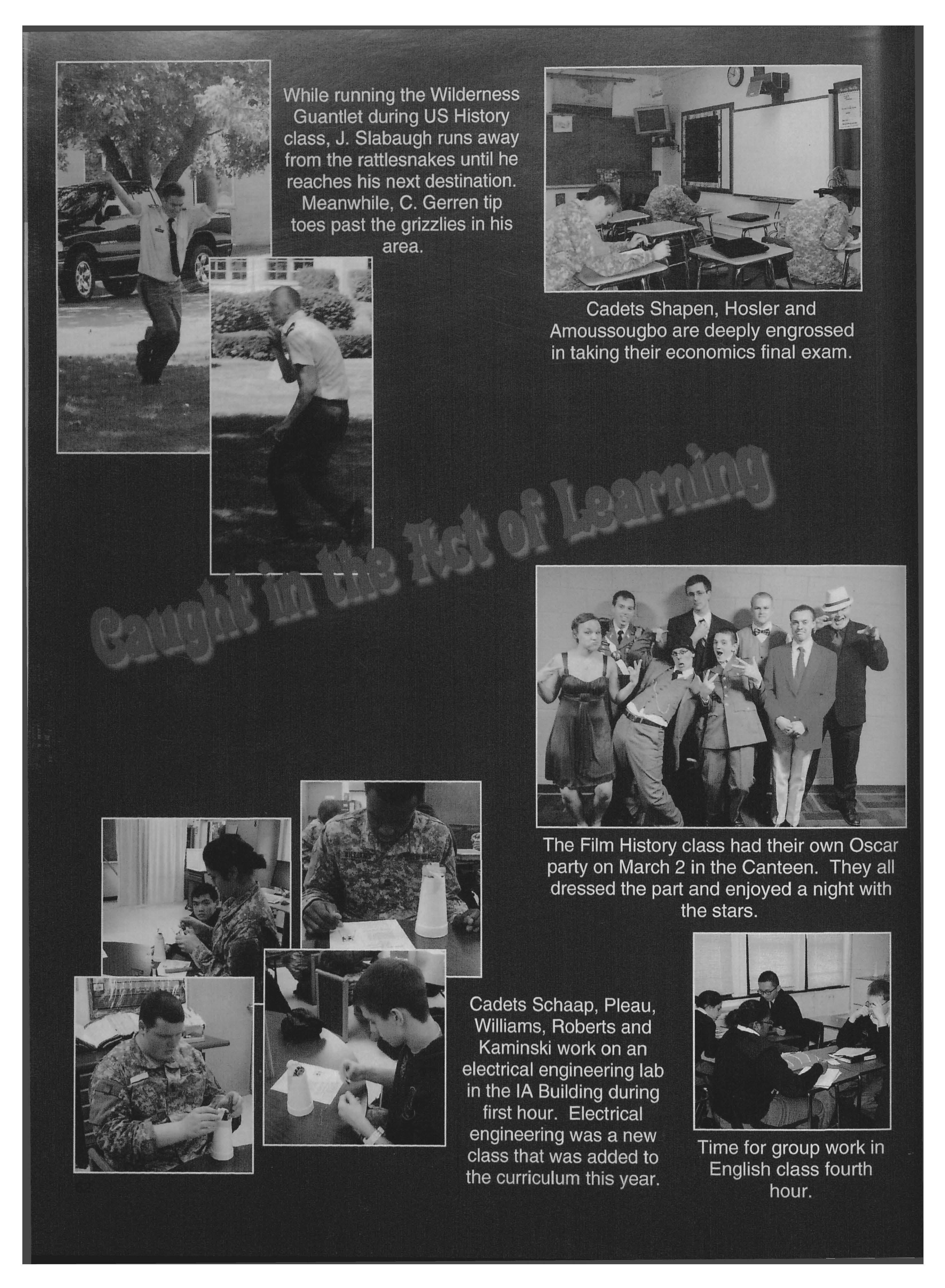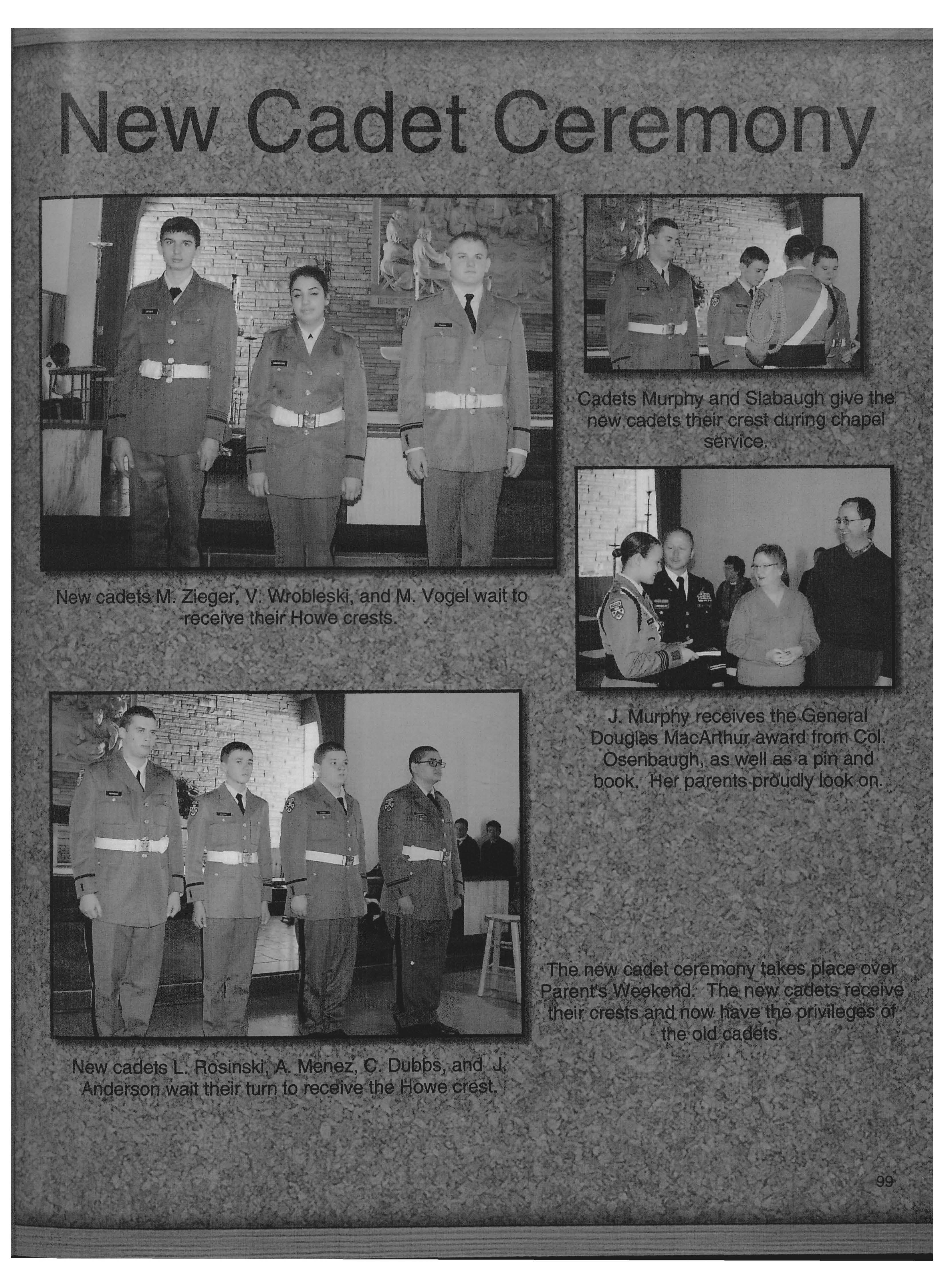 Dedication 4 Fall Events 6 Fall Sports 1O Fall/Winter Events 18 Seniors 36 Faculty and Staff 46 Juniors, Sophomores, and Freshman 54 Companies 64 Battalion/Company Staff 72 Winter Sports 75 Clubs/Organizations 86 Winter Events 94 Middle School Memories 102 Advertisements 108 Candids 112 Index 114 More Candids 124 Spring Supplement 129 2