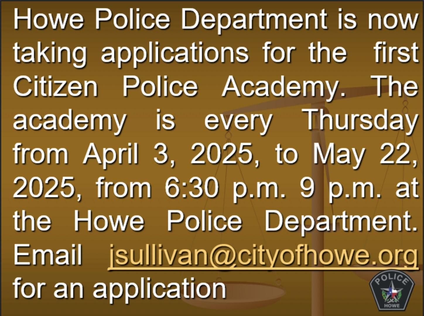 HowePoliceDepartmentacceptingapplicationsfortheCitizen’sPoliceAcademy