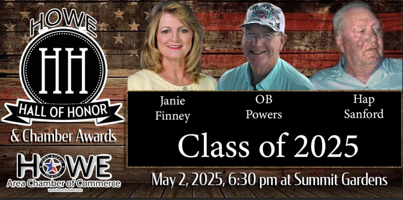 ThesewillberecognizedattheHoweHallofHonoronMay2,2025atSummitGardensat6:30pmalongwiththeHoweHallofHonorInducteesJanieFinney,O.B.Powers,andHapSanford.Thereisnochargetoattend,andseatingislimited.Reservationscanbemade at:Program:HoweHallofHonor2025