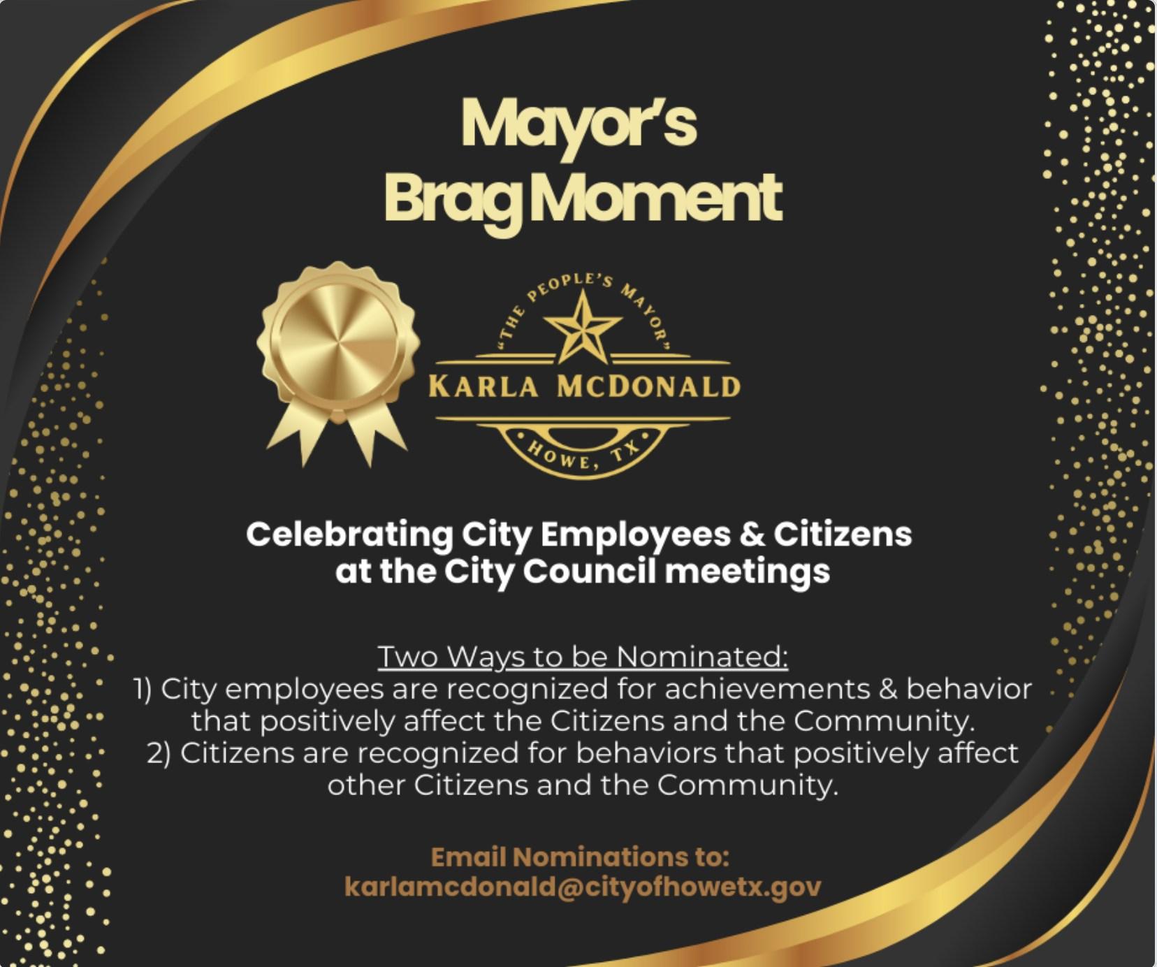 showcaseandspotlightthe currentandfuturegrowth ofHowewithpresenters suchasGraysonCounty JudgeBruceDawsey, GraysonCountyCommissionerJoshMarr,Howe MayorKarlaMcDonald, HoweCityAdministrator MonteWalkeraswellas otherkeymembersofthe