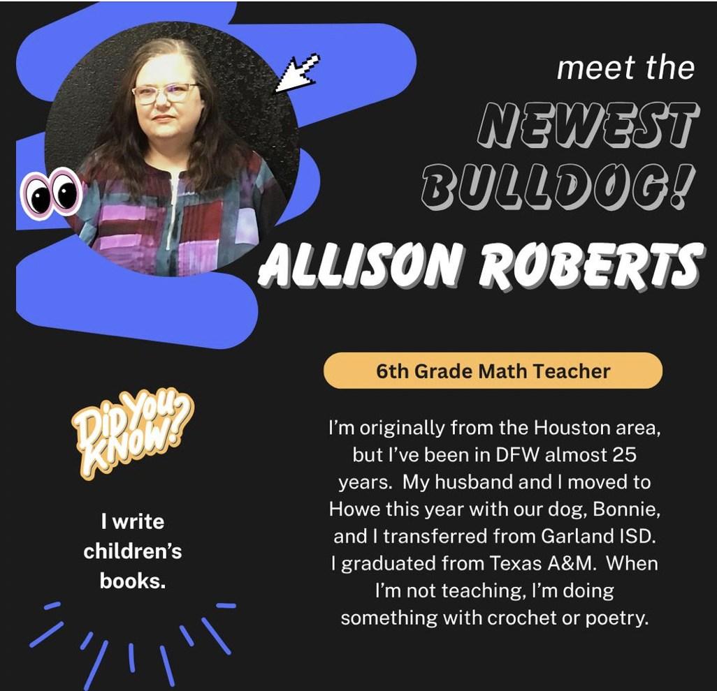 NewTeacherstoHoweISD AllteacherintroductionswerefoundontheHoweISDandHoweIntermediateSchoolFacebookPages.Welcome,tothenewteachers!