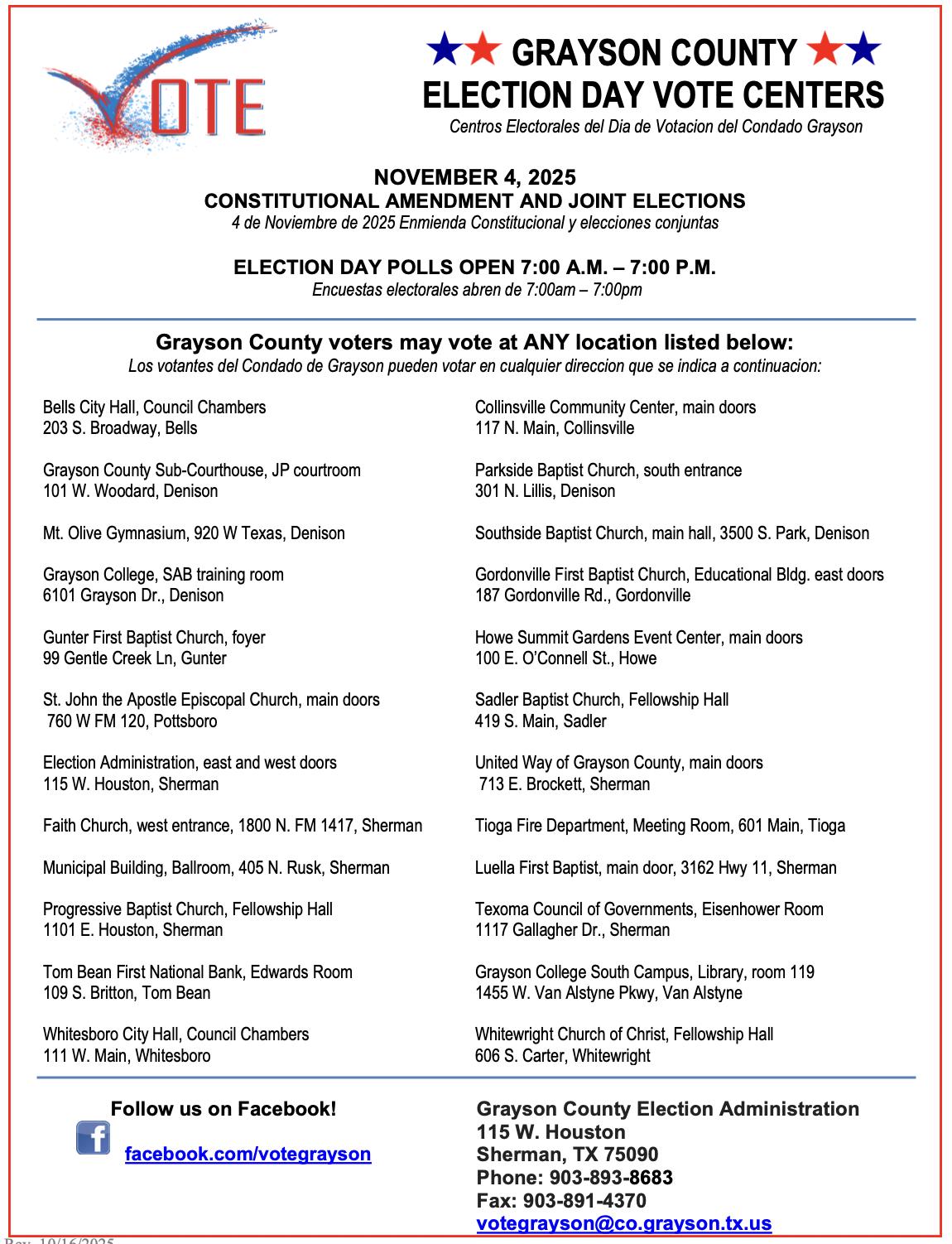 Earlyvotingcontinues thisweekthroughOctober31stwithofficialVotingDayonNovember 4th.Localvotingcenters’locations,times,etc. arelistedinthe“Local Events”sectionofthe paperthisweek.There are17propositionson theballotthisyear.