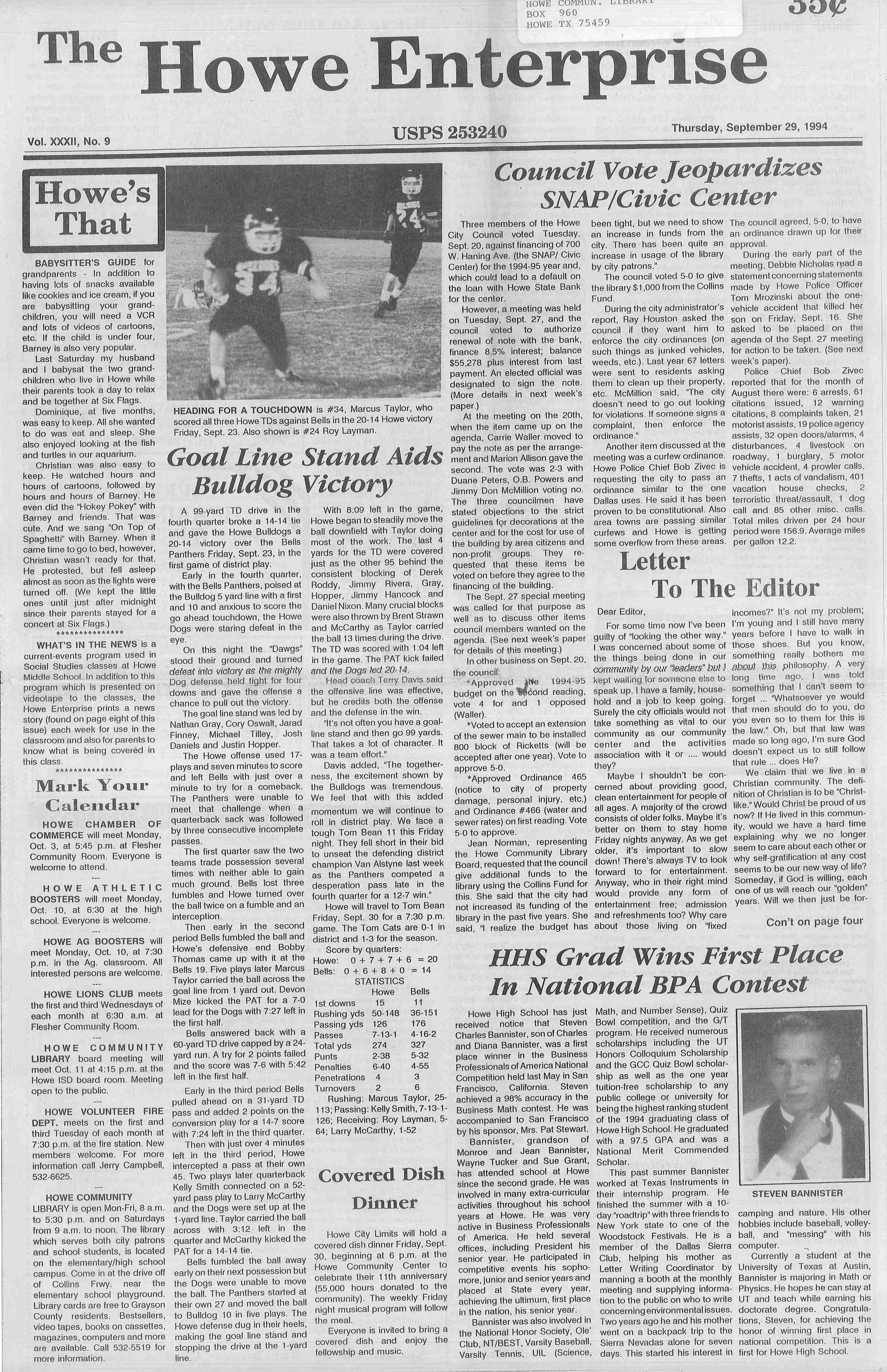 putonaballsecurityclinicmuchlike hedidinweektwoagainstBonham. Withthedominatingoffensiveline, Piperrackedup72yardson10carries andpuncheditinfromthe25yardline with5:50remaininginthegame.Pieper’sscoreaddedtheexclamation marktoHowe’s56-14win.