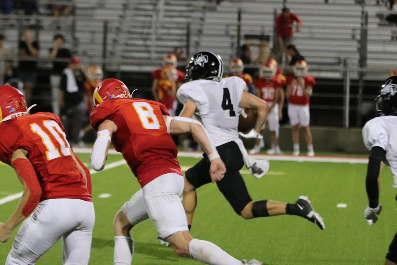 BradenUlmer(4)races75yardsforhis10thrushingtouchdownofthe season. Photo by Michelle Carney.