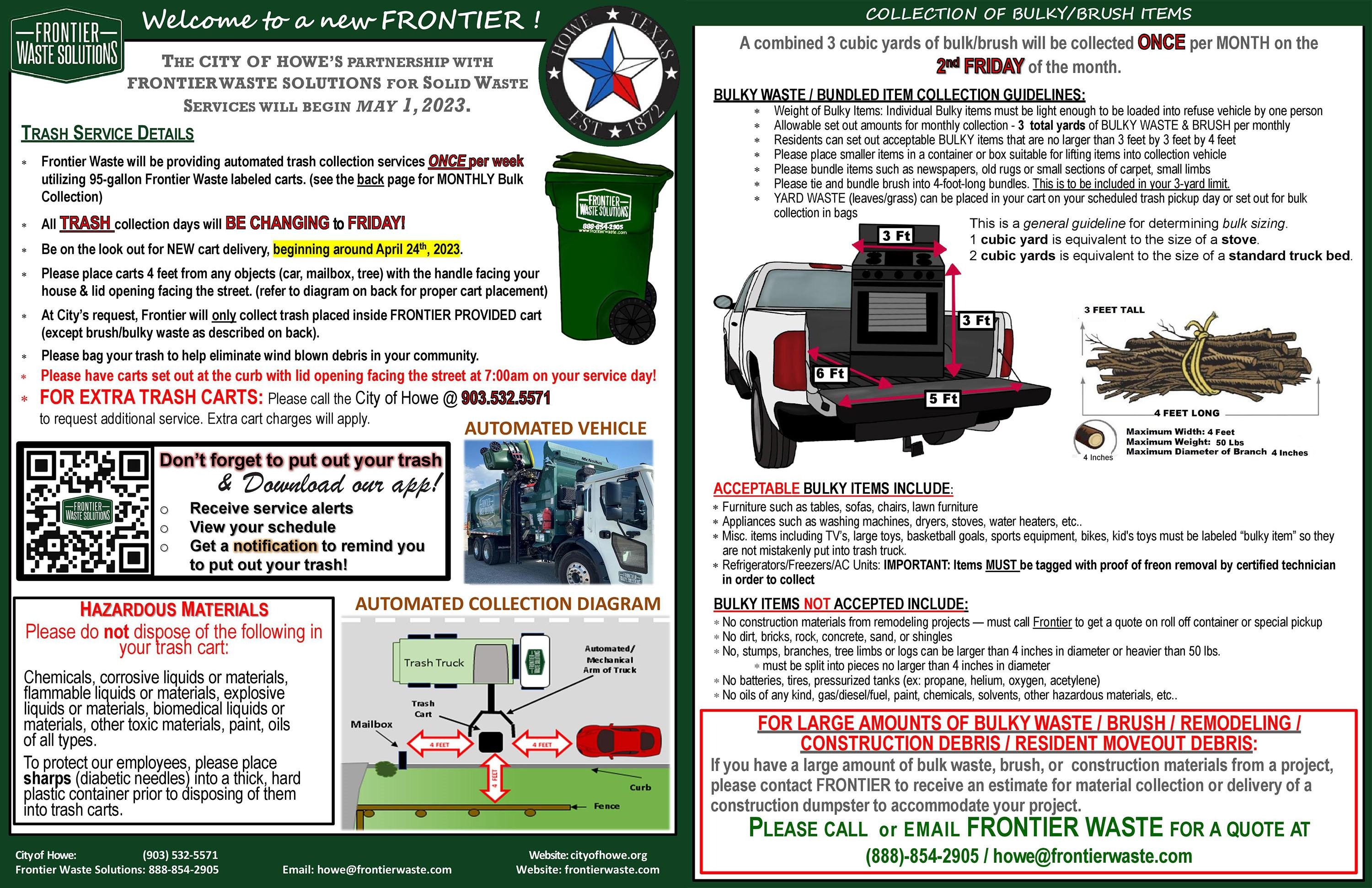 BulkTrashPickup2ndFriday ofeachmonthinHowe. CityofHowe SECONDS