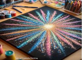 1 Lay black paper on a flat tray, using the glue bottle, draw out your fireworks - bursts, loops and stars