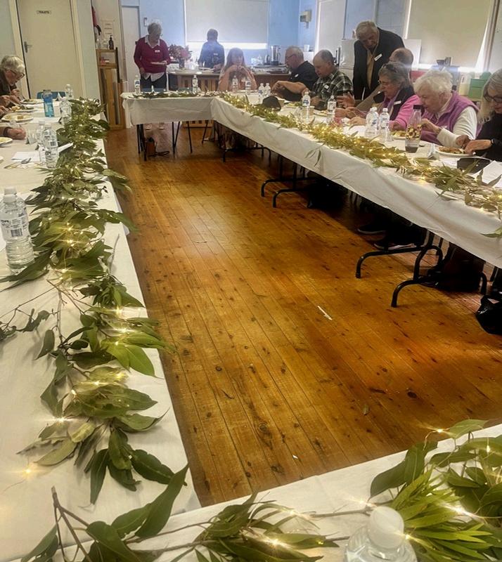 We didn’t quite know what to expect at the first combined Churches lunch for 2025 after I handed over the leadership to Lyn from the Generation Life Church The new team excelled themselves as when entering the hall, we were greeted by Helen and saw that the tables were decorated with gum leaves and fairy lights Each person attended received a packet of seeds with a card that said ‘let us continue to plant seeds of faith, love and goodness in our community’.