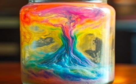4 Watch as it fizzes and bubbles, creating a colourful eruption