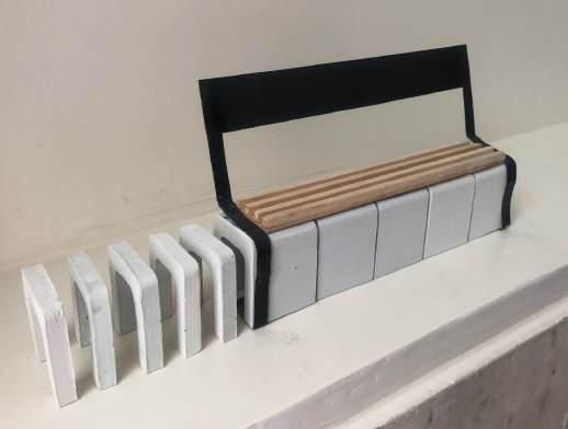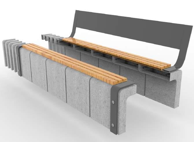 This collection consists of small cement pieces of the same size being placed next to each other and by changing the number of pieces we will be able to use them in different areas and make multiple benches.