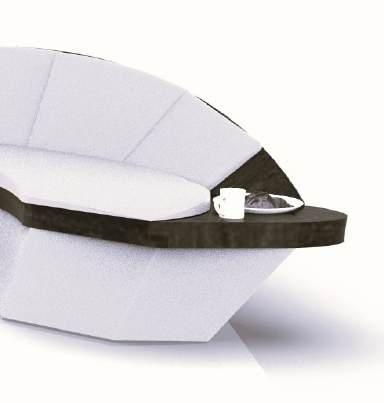 The form of the back rest is inspired by the ceiling of the Palace which is inspired by the shape of a shell