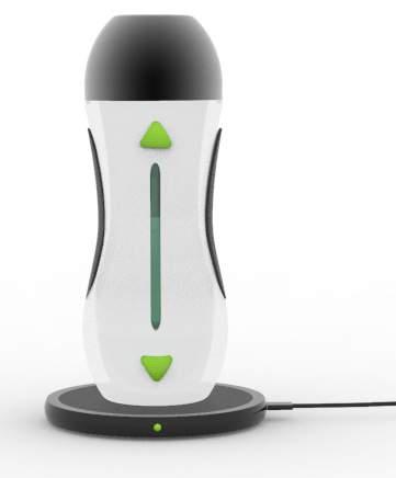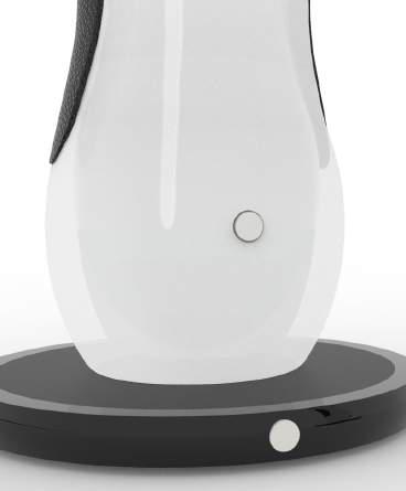 The colorful button indicates the product’s charge level. The charger can also be used as a coaster.