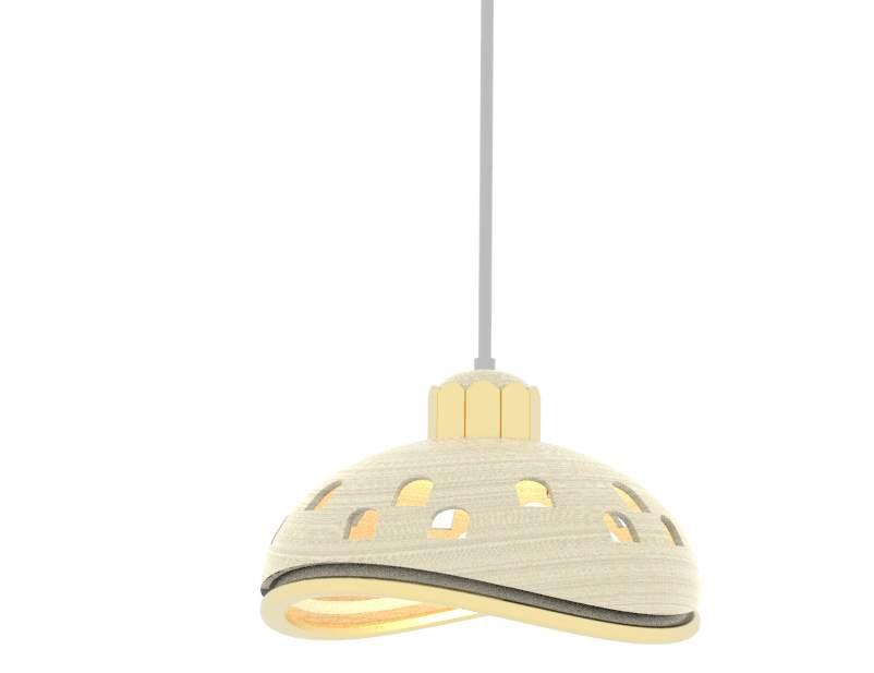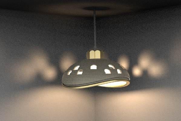 The form of the lamp holder is inspired by the simplified arch form used in the highest part of the roof.