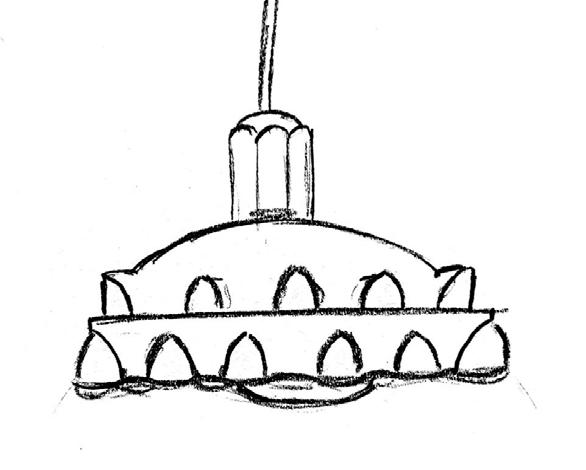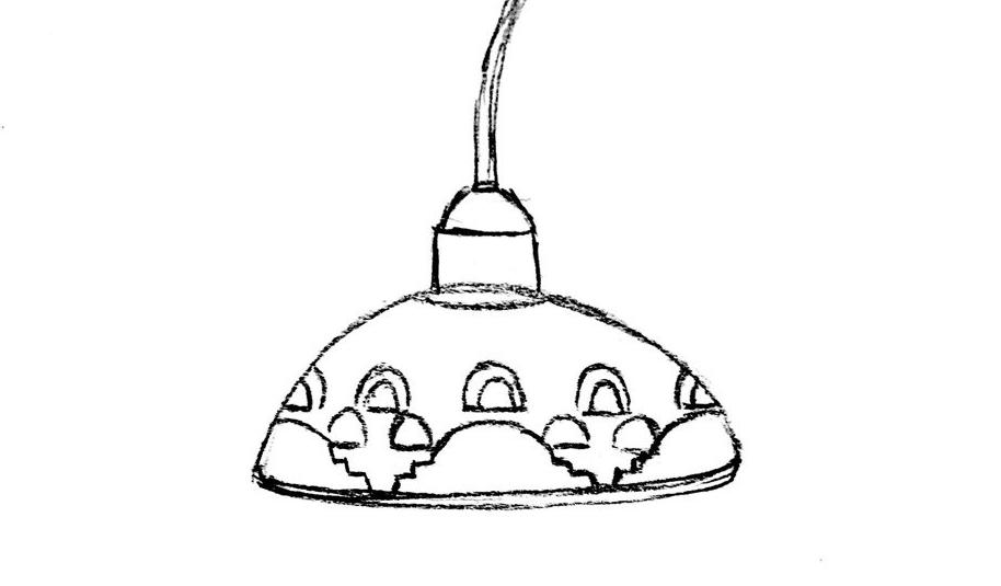 The curve at the bottom of the lighting is inspired by the simplified arch form of the staircase used in the bottom of the roof.