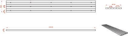 The exploded perspective and the views of vertical cuts applied to the bench show its structure in detail.