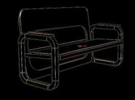 This view of the vertical cut applied to the bench shows its internal structure and shows the connections and parts used in this bench in a more detailed manner.