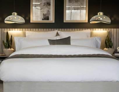 The hollow parts on the lighting are inspired by the simplified form of the light vents used on the ceiling.