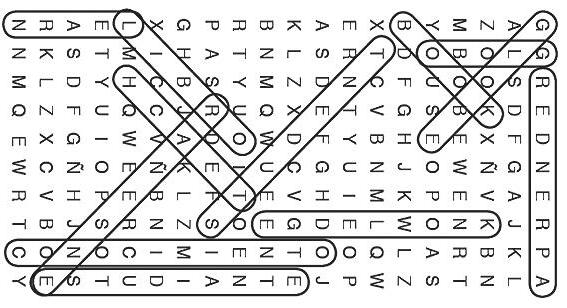 Ahora, busca estas palabras en la sopa bilingüe: NOW, LOOK FOR THESE WORDS IN THE BILINGUAL WORD PUZZLE