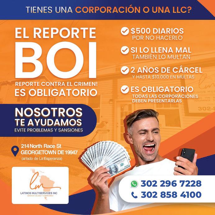 Iglesia Fe, Amor y Esperanza- 1011 Mattlind Way, Milford. 302-943-5975. Sº: X 7:30pm. D 10:30 am. Pastor Angel García.