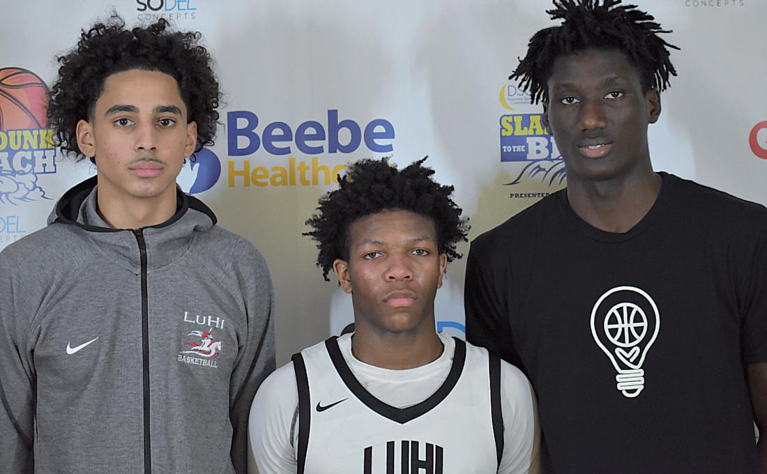 Jayden Ross, Jayden Reid y Godswill Eheriene de Long Island Lutheran (Nueva York).