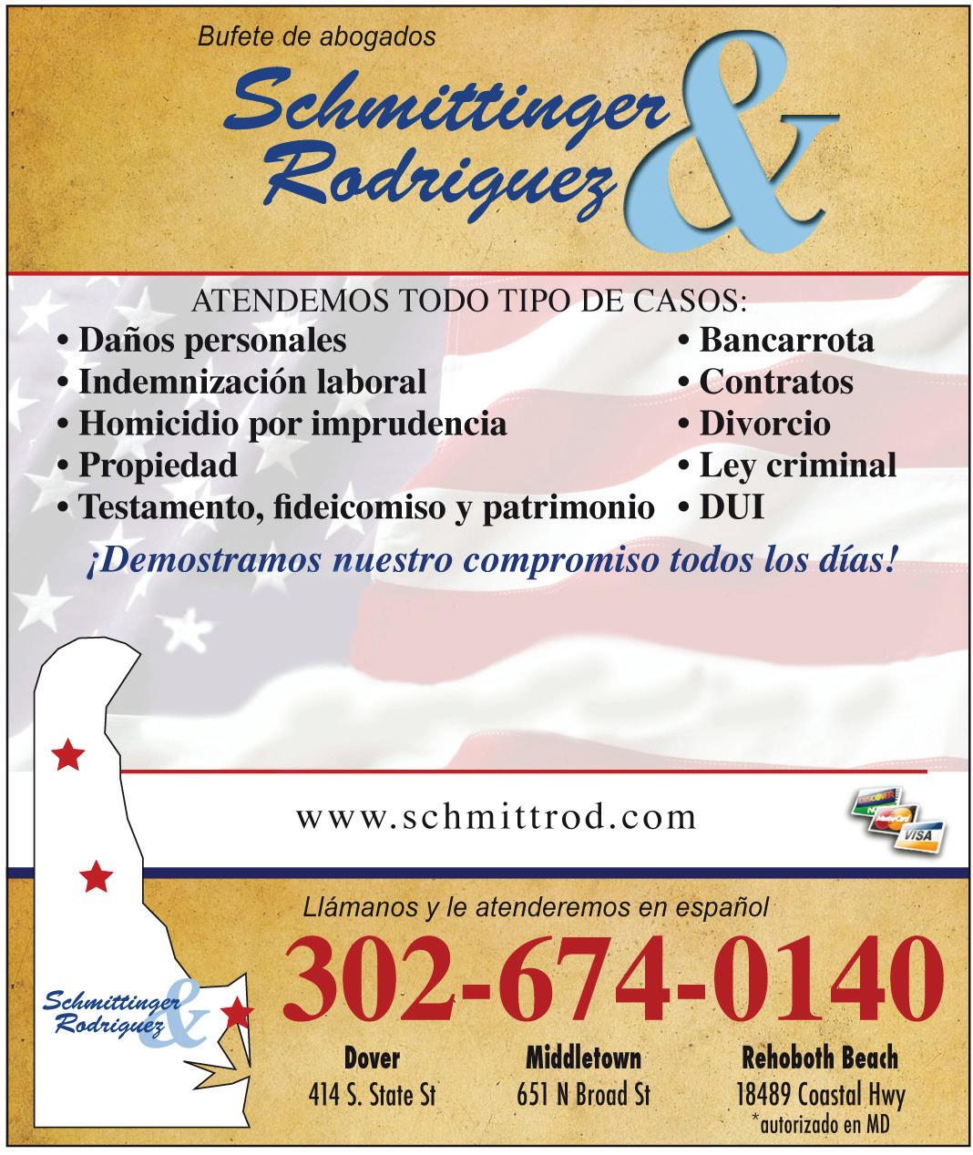 hoyendelaware.com • 310 - 2023 • Employment opportunity?… ads@hoyendelaware.com John Russum, LCSW Behavioral Health Administrator Phyllis Colombaro, DDS Maribel Santiago, MD Director of Pediatrics Fabricio Alarcón, MD, FACP • Tratamiento de abuso de sustancias Nicholas H. Rodriguez Douglas B. Catts William D. Fletcher, Jr. Craig T. Eliassen Crystal L. Carey* Scott E. Chambers* Walt F. Shmittinger B. Brian Brittingham Gary E. Junge Diana E. Louder Bonnie S. Gladu Tienda Tacaná y taquería Horario: 8am - 9pm Todos los días Taquería (pedidos): 302-436-5326 410-202-4932 Tienda: 302-236-2634 302-436-6060 38224 DuPont Blvd • Selbyville, DE 19975 en la Rt 113, frente a Food Lion Fax Pagos de toda clase de billes : agua, teléfono, luz, cable, internet... • Recargas de celulares (en USA y fuera) • Teléfonos y tarjetas teléfonicas • Envío de dinero a Centroamérica y México • Envío de cajas a Centroamérica y México • Productos hispanos de consumo diario • Botas, cinturones y sombreros TAQUERÍA Menudo Caldo de res, camarón, pescado Mojarra frita Bistec al gusto Sopa de marisco Coctel 101 Cedar St • Georgetown, DE En el corazón de nuestra comunidad... Las Vegas Tienda 302-858-4009 • Envíos de paquetes por libra a Guatemala • Pago de “billes” • Envíos de dinero por Intermex, Intercambio, Viamericas y Ria • Servicio de fax, copias, correo electrónico • Productos consumo diario • Trajes deportivos, botas de trabajo, botas vaqueras • Regalos para toda ocasión • Recargas de teléfonos En Georgetown los viernes y sábados