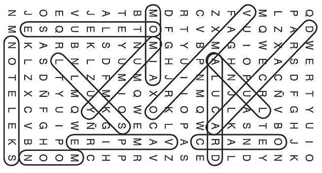 Ahora, busca estas palabras en la sopa bilingüe: NOW, LOOK FOR THESE WORDS IN THE BILINGUAL WORD PUZZLE
