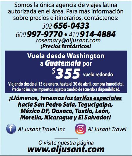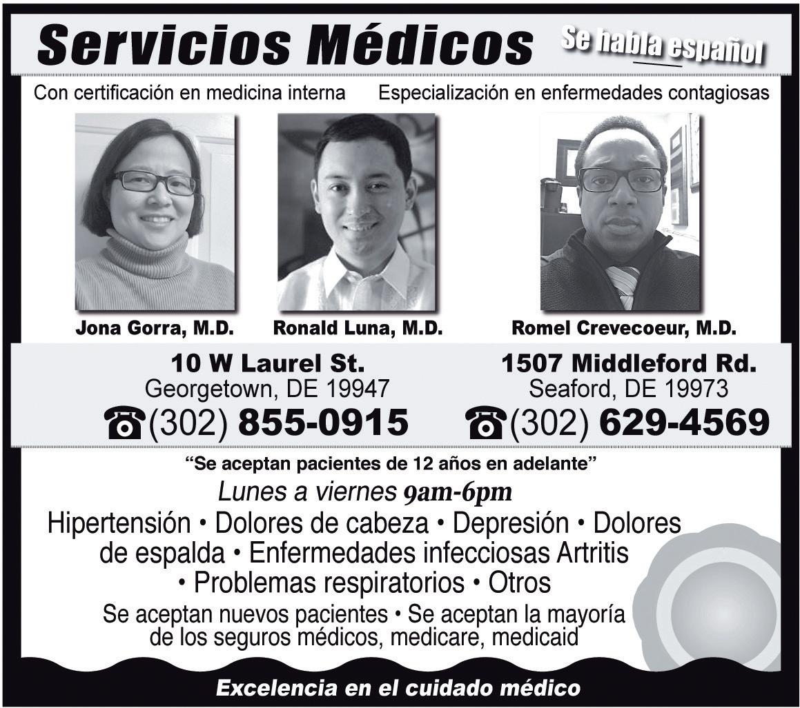 Milford - Clases gratuitas. Boys & Girls Club of Milford. 101 Delaware Veterans Blvd. 302-422-4453 Wilmington - Clases gratuitas. Centro Latinoamericano (LACC) en edificio Manuelita Olson: 301 N. Harrison St, Wilmington, DE. Info 302-655-7338 y 302-295-2161 Wilmington - Delaware Tech - Campus de Wilmington (4th St. & Orange St.): Intermediate & Advanced English Grammar Classes. (Financial Aid may be available). Info (302) 571-5336. Salisbury, MD - Clases gratuitas. Igl. Apostólica Nueva Vida. 31193 Mt Hermon Rd, Salisbury, MD. J: 6pm. Info: Eduardo González 410-726-8257. Bear - Clases gratuitas. Biblioteca de Bear, 101 Governor’s Place, Bear, DE 19701 302-658-5624. Clases de ciudadanía lunes tarde. Salisbury, MD - Clases gratis. $8 materiales. Igl. Providence Presbyterian, 311 Parker Rd, Salisbury, MD J: 7-9pm. 410-546-0577 www.providencesalisbury.org. $8 mat.