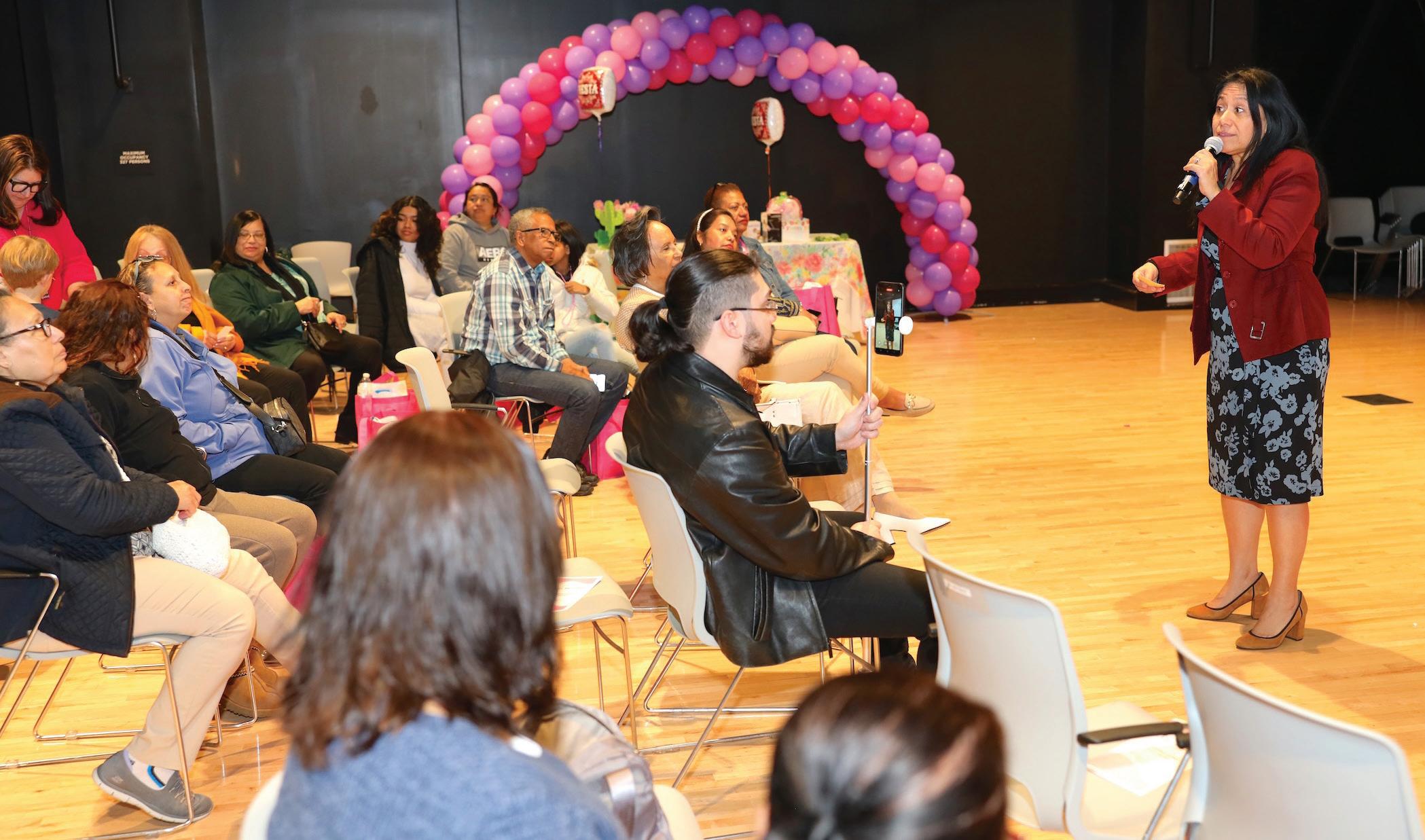 Intervinieron Bethsaida Acosta, especialista en violencia intrafamiliar del Centro Latino; Rosita Quiñones, del Proyecto Totem (adicciones); Ana Figueras, especialista del Centro Latino con Hogares Saludables; Luisa Ortiz (Christiana Care), superviviente de cáncer que habló del triple cáncer negativo y del cáncer de colon; la coach Catalina Natalini; y, Lupita Castañeda, de la Universidad de Delaware, que habló de nutrición (“Comiendo saludable y moviéndote más”).