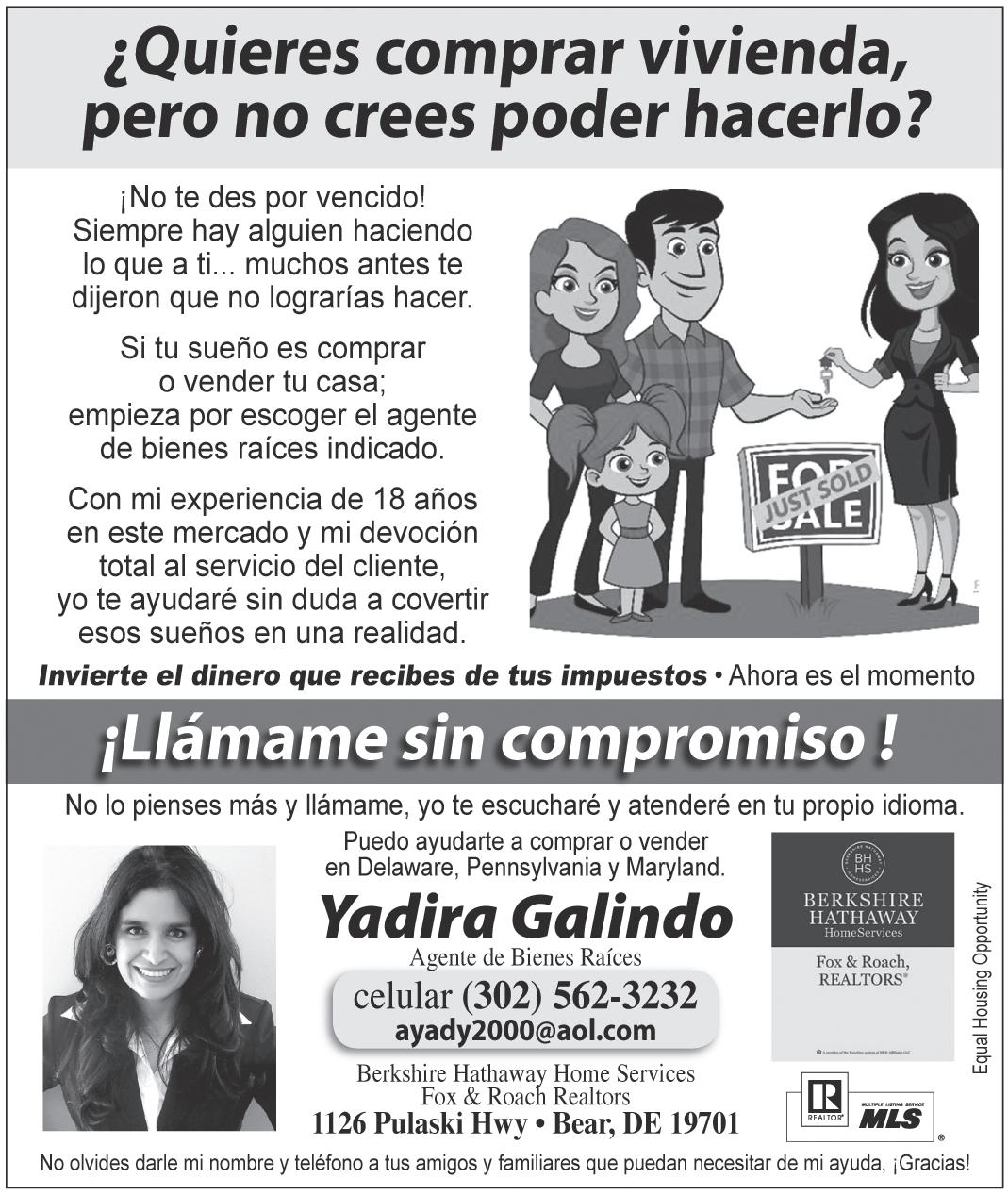 Puedo ayudarte a comprar o vender en Delaware, Pennsylvania, Maryland y New Jersey.