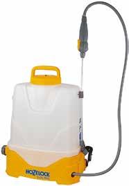 CodeBarcode 4424 0000 SAP Code 100-001-764 Product Multi Jet Nozzle • A unique, practical and compact nozzle holder with 3 integrated nozzles, for all types of treatment • Wide flat fan nozzle 35-95cm for spraying weeding treatments over large areas • Narrow fan nozzle 20-60cm for spraying DIY applications more precisely • Conical mist nozzle for a good coverage of insecticide or fungicide application on a shrub or bush • Compatible with all 8mm lances and easy to take apart to clean Pack Quantity 5SprayerBarcode Accessories - sprayer spares available from www.hozelock.com 1 Wide fan 35-95cm 2 Narrow fan 20-60cm 3 Conical mist to jet nozzle PATE NTED BRE V ETÉE INNOVATION Electric Sprayer 4615 1240 2 Pro Code 4615 1240 SAP Code 100-001-793 Product Electric Sprayer 15 • 15l tank markstranslucentwithgraduatedandshoulderstraps • 3 levels of pressure = 1 bar, 3 bar and one position for high flow • Duration between 2.5 to 4.5 hours (depending of the level of pressure used) • Lithium ion battery, easy to fit. Battery charge indicator and quick charging in 4 hours • Wide opening hole (130 cm) with filter to prevent pump blockages • Comes with 60cm aluminium lance and compatible with all Hozelock accessories Size 15l Pack Quantity 1 Barcode Syringe Sprayers 4412 1240
