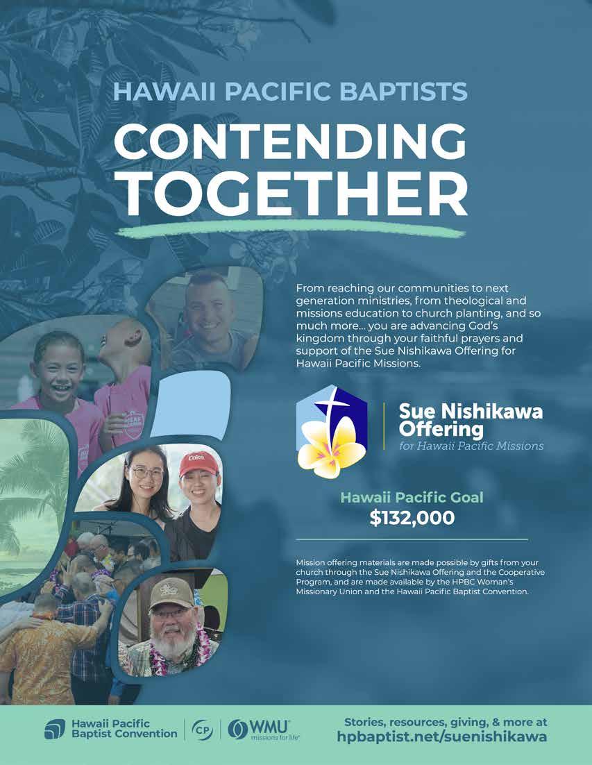 Philippians 1:27 calls us to live as “citizens of heaven” who are “standing firm in one spirit, in one accord, contending together for the faith of the gospel.” As Hawaii Pacific Baptists, we contend together across islands and nations to advance God’s Kingdom. Through unified prayer and generous giving, we accomplish far more together than any single church could achieve alone.
