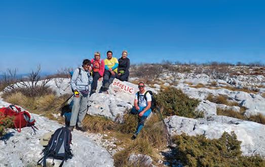 su puhali na gornjoj fazi staze. Srića pa kap rakije čini čuda, odmah malo razbistri glavu. Nekima je baš bilo ružno, pa smo skoro odustali, ali ipak uz malo nagovaranja idemo lagano prema gori, mic po mic. Za čudo mi je da sam prvi put išla do gori a da nismo sreli baš nikoga. Obično je uvik neko u điru. Evo nas ipak uz malo muke na vrhu. Malo smo odmorili, marendali i onda se slikavali na sve moguće kombinacije. Nakon pauze, idemo natrag. Pitam ekipu oćemo li na bunare Rajčice ali vidim da nisu baš od volje. Tražimo u Muću kafić ali nedilja je i skoro sve je zatvoreno. Ipak, našli smo jedan lipi iako nema ni šlaga a bome ni Radlera, haha - ali konobari-