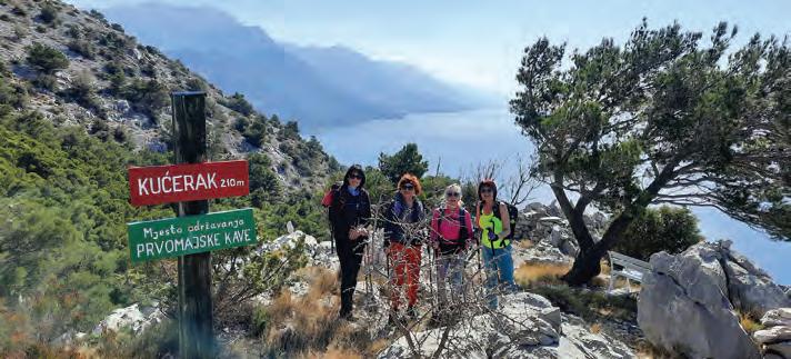 uspona. I pogodila sam jer se od magistrale kreće odmah strmo uzbrdo. Kućerak je mjesto gdje svi naprave prvi predah uz čaj ili kavu uz obavezno fotografiranje na slatkoj klupici u hladu, pa zašto bi mi bile iznimke. Nastavljamo dalje do odmorišta Pas koje se nalazi neposredno ispod hrbata te nakon kratke pauze nastavljamo hrbatom prema vrhu Šatarice 642 m ispod kojeg se naziru Dubci i Vruja, a uz pomoć bure koja je očistila zrak vidi se i cijeli veličanstveni masiv Biokova.