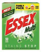 Μπάνιο •WC Expert •Επιφανειών 4in1 •Επιφανειών Χ.Χλώριο τιμή / τεμ. 5 99€ 2ΠΟΝΤΟΙ τιμή λίτρου 4,50€ 2 25€ 2ΠΟΝΤΟΙ τιμή λίτρου 1,63€ 2 44€ 2ΠΟΝΤΟΙ τιμή λίτρου 2,73€ 3 55€ 2ΠΟΝΤΟΙ ESSEX Υγρό Πλυντηρίου 32μεζ. •Multi •Touch ESSEX Σκόνη Πλυντηρ.50μεζ. •Multi •Touch τιμή μεζ. 0,10€ 4 89€ 2ΠΟΝΤΟΙ