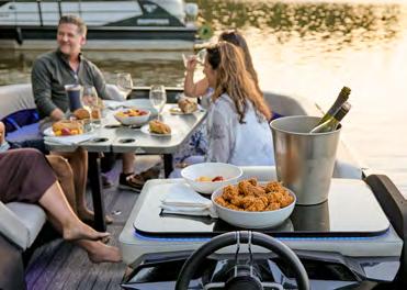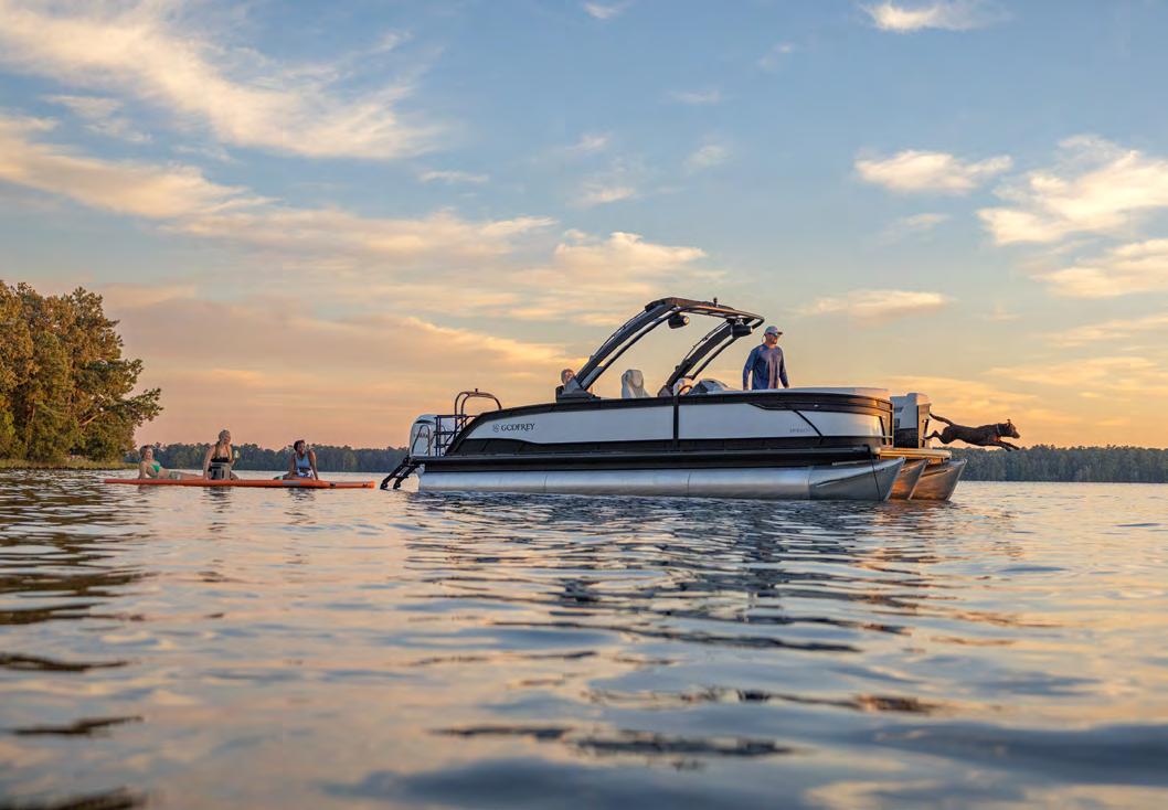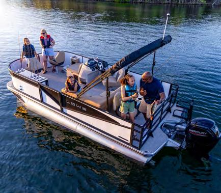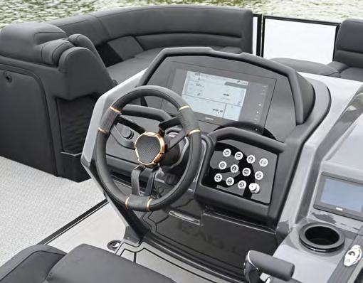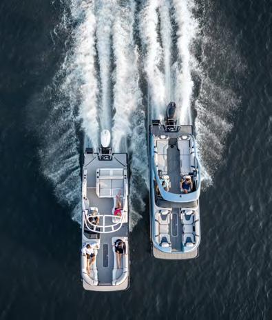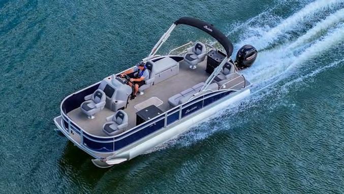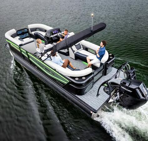 For model year 2026, Evotti is offering its 500 and 700 Series of pontoons in a variety of layouts and sizes including its Convertable Stern (CS) and Quad Lounge (QL) floorplans. Both lines include Evotti’s EVO3 hull, lighted power Bimini, EVO fender flips, LilliPad Marine ladder, mid-ship cleat, elevated helm and other key standard features. The higher-end 700 Series comes standard with a 15-inch Widescreen Garmin at the helm, JL Audio sound system with sub and amp, wireless phone chargers throughout, glass windscreen and other luxurious upgrades.