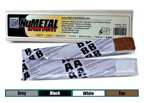 When you need to repair cracks and gouges in your boat, NuMetal Epoxy Putty from KBS Coatings will ensure a long-lasting, reliable finish. This easy-to-use two-part formula provides a durable solution with a compound that cures without shrinking or sagging. NuMetal is incredibly versatile and is perfect for hull, deck, and keel repairs, effectively filling cracks, holes, and gouges. Additionally, it excels at fiberglass and gelcoat repairs and can tackle rot and other damage. NuMetal is also highly effective for sealing and bonding fittings and hardware, ensuring a long-lasting, reliable finish for boat repairs. Ideal for marine applications, NuMetal can be drilled, tapped, sanded, primed, and painted. It also works great for quick underwater repairs. Withstanding temperatures up to 300 degrees Fahrenheit, NuMetal is available in white, tan, black, and grey. (www.kbs-coatings.com)