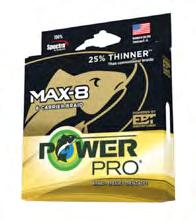 Designed for deep-water anglers seeking smooth casting and control, PowerPro Max 8 features an 8-carrier Spectra HT construction that cuts through current with ease for precise vertical jigging. It maintains high tensile strength with a 25 percent thinner diameter. Enhanced Body Technology (EBT) infuses each fiber with resin for a rounder, smoother, and more durable line—boosting castability, line management, and abrasion resistance. (www. shimano.com)