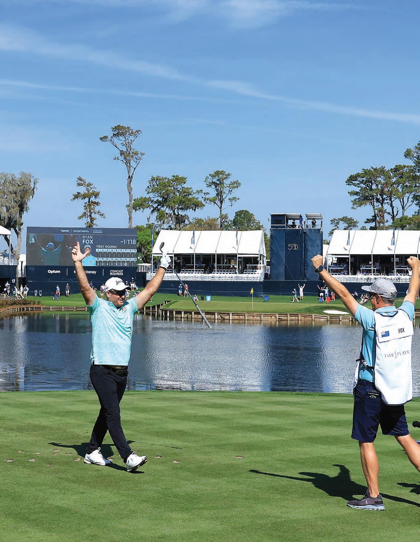HOLE IN ONE: Ryan Fox holes his tee shot on the par-3 17th hole during the first round of The Players Championship, TPC Sawgrass, 2024.