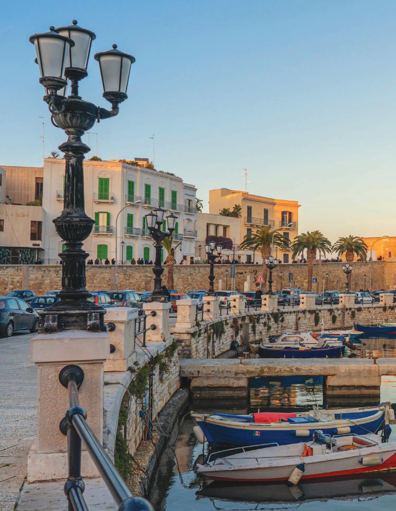 Modern Bari, meanwhile, boasts elegant 19thcentury boulevards, smart shops, cafés and theatres and many good restaurants offering everything from pizza and panini to regional pasta and elegant seafood dishes.