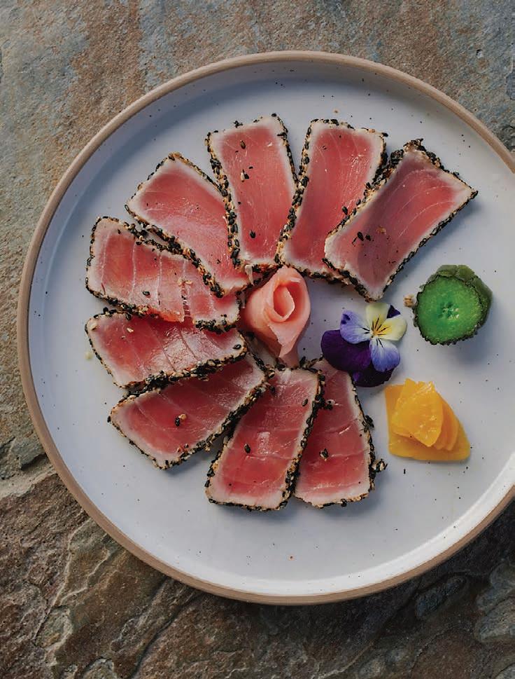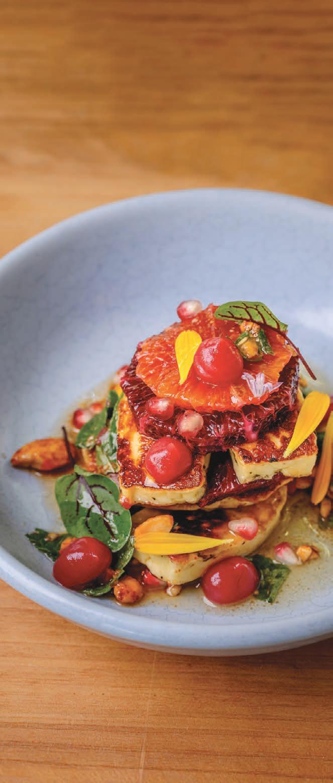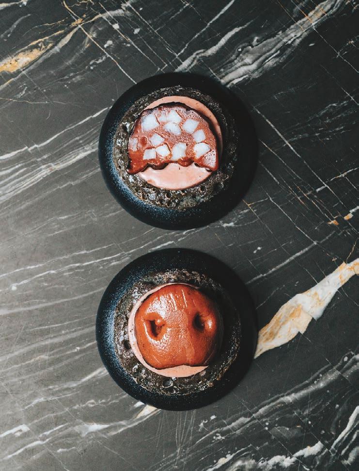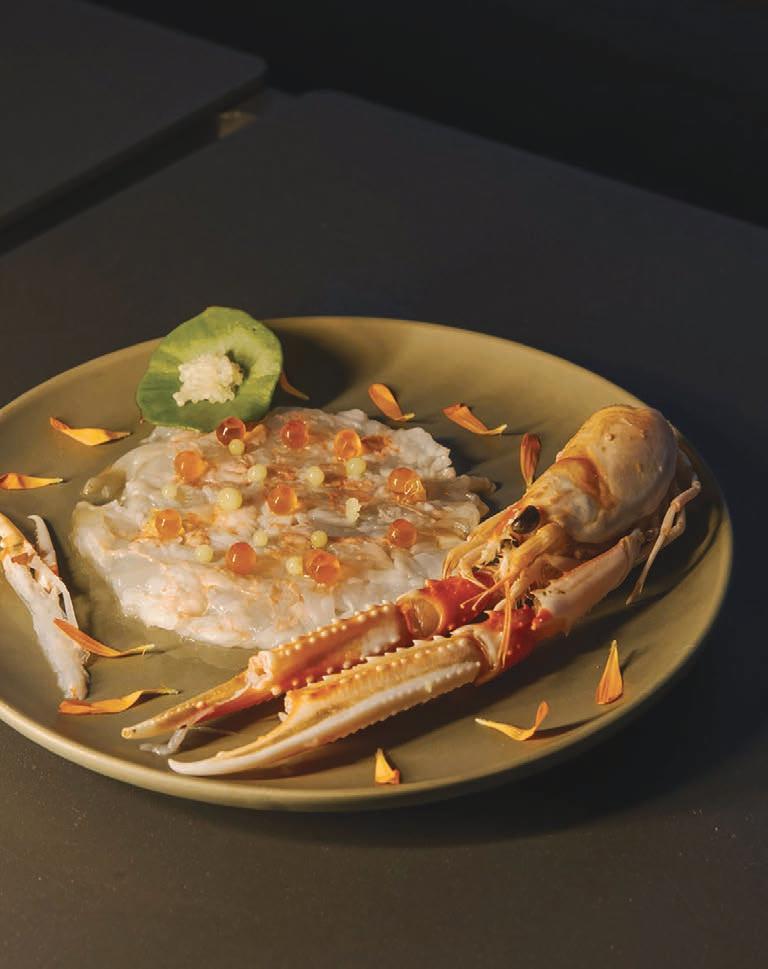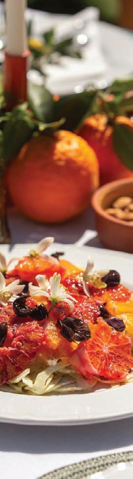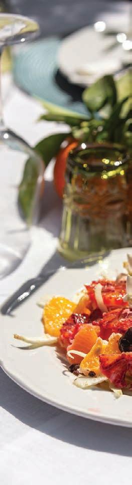 biodiversity. “We follow the philosophy of Slow Food,” he explains. Fresh coastal fish, estategrown produce from its two-acre garden and heritage ingredients such as Bronte pistachios and Nubia red garlic reflect a commitment to reviving authentic Sicilian flavours.