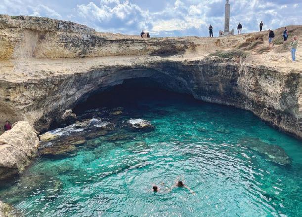 CLOCKWISE FROM TOP LEFT: Roman amphitheatre, Lecce, still used for concerts; the deep blue 'Cave of Poetry', Melendugno; beachside at historic Gallipoli.