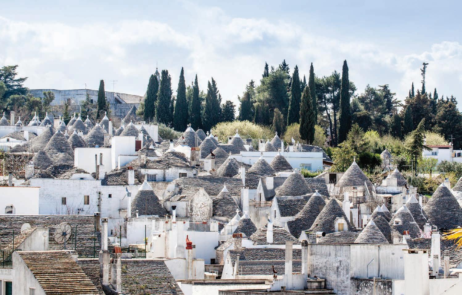 The countryside is a patchwork of olive groves, vineyards and dry-stone walls, with narrow country lanes winding through villages perched on hilltops. Each town has its own personality: Martina Franca is elegant and Baroque; Locorotondo is immaculate and whitewashed; and Cisternino is known for its atmospheric lanes and fornelli pronti, small butcher shops that grill meat to order.