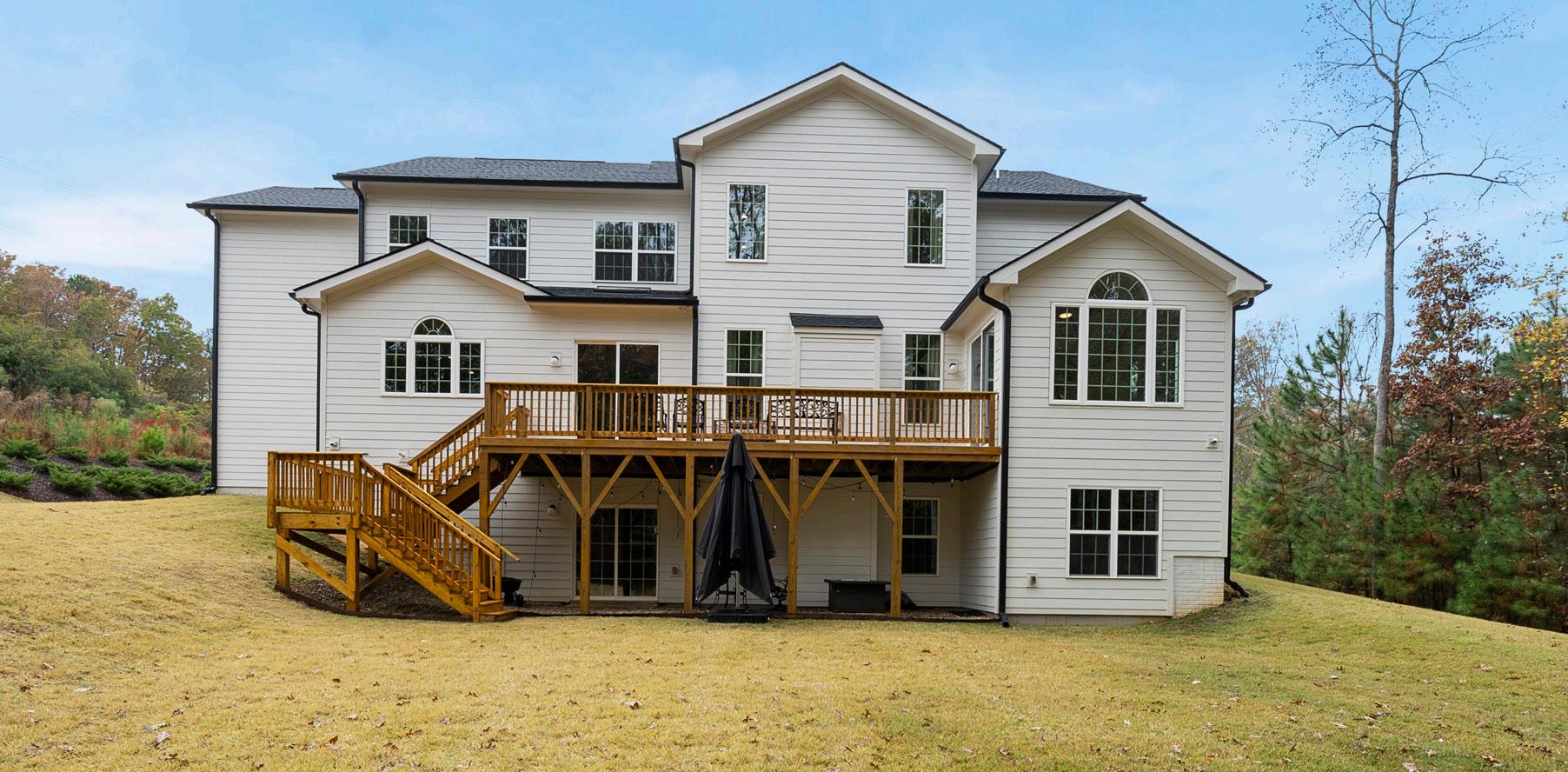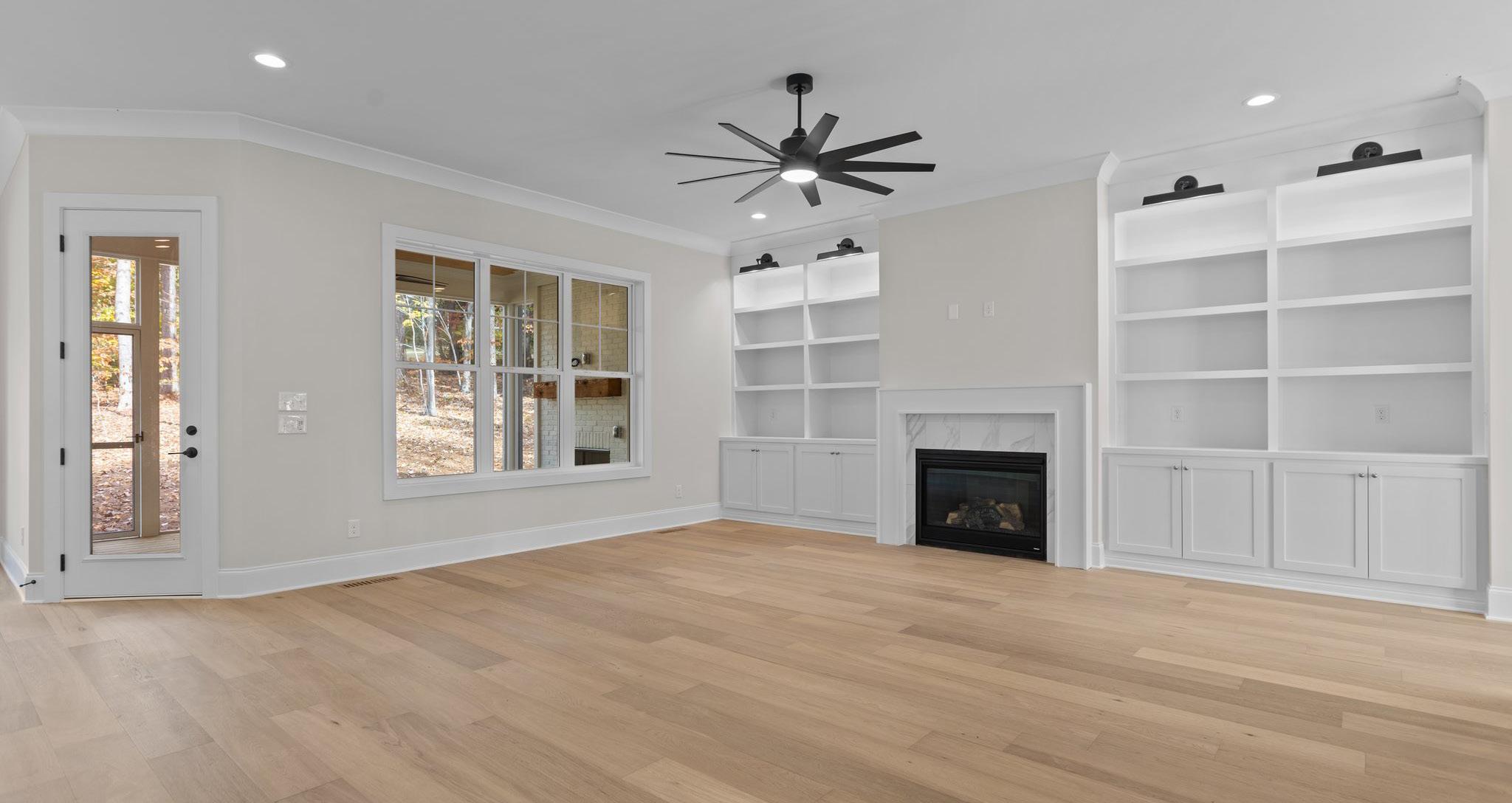 Custom built by DJF Builders in the Newbury Subdivision, this home features a main-level primary suite, private study, and 3-car garage. Hardwood floors and upgraded trim flow throughout. The kitchen offers “Miami Vena” quartz countertops, custom cabinets, a large island, and a walk-in pantry. The primary bath includes separate vanities, a freestanding tub, and a zero-entry tile shower. The family room has a gas log fireplace, built-ins, and sliders to the covered porch. Plus, an oversized bonus room and spacious secondary bedrooms.