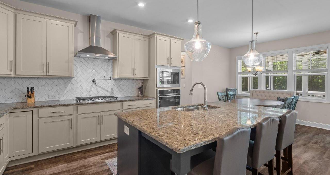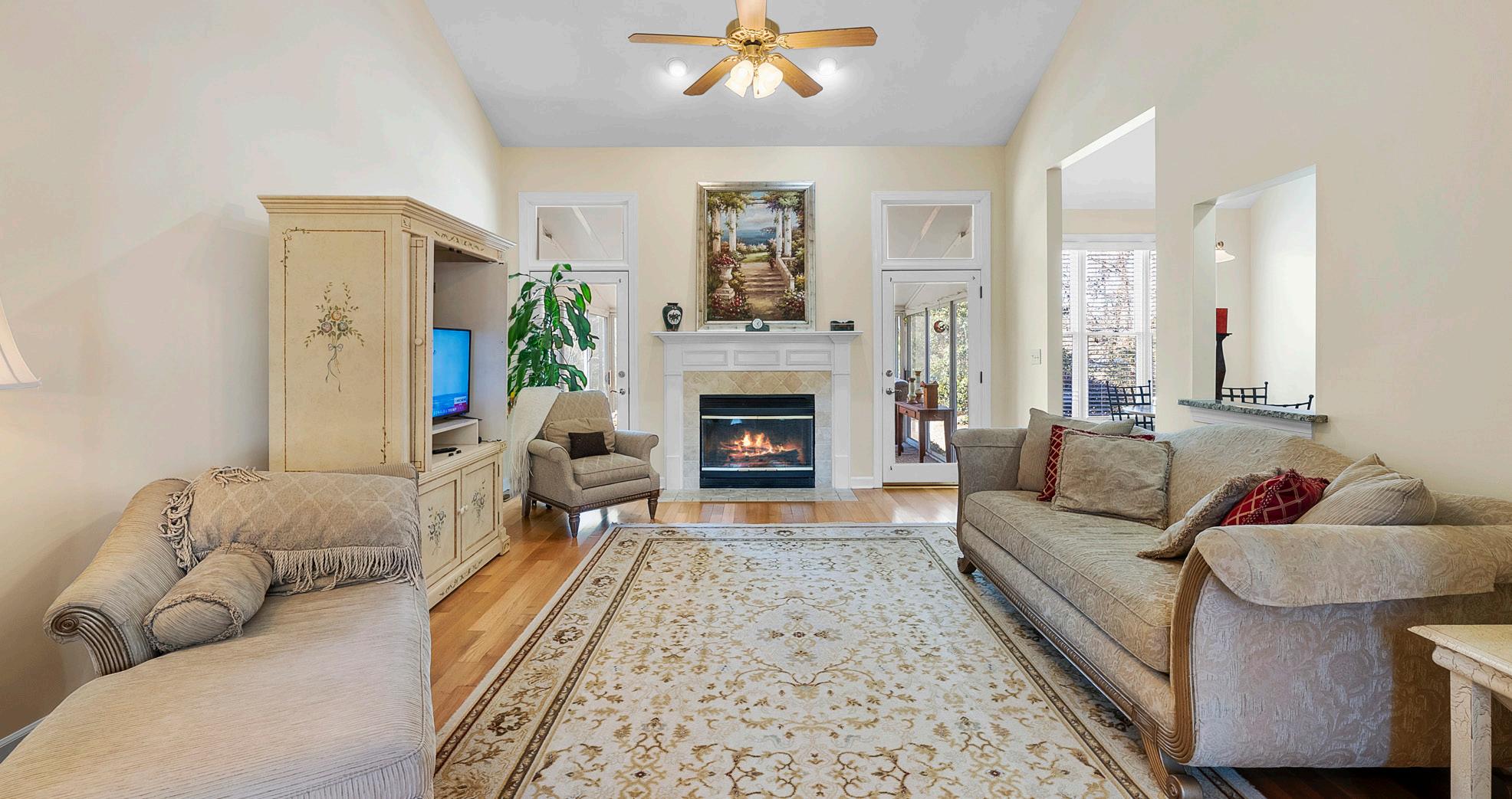Welcome to this prestigious Toll Brothers Home in the exclusive Hasentree Golf and Country Club Community. The inviting rocking chair front porch leads to a stunning two-story foyer. Recently upgraded with engineered hardwoods throughout the main level (except bathroom and laundry), plus new lighting and ceiling fans. The heart of the home features a dramatic twostory family room with custom white stone fireplace, floating shelves, and built-in cabinets. The gourmet kitchen boasts new tile backsplash, premium stainless appliances, walk-in pantry, and breakfast area. The luxurious owner’s retreat includes a tray ceiling, sitting area, and Closets by Design walk-in closets. The spa-like ensuite offers dual vanities, soaking tub, and walk-in shower. The 2,329 sq ft unfinished basement is plumbed for a potential in-law suite with a kitchen. listed by: