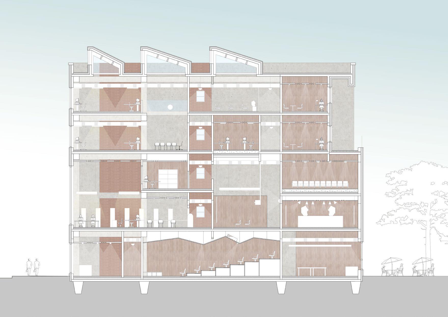 I drafted the sections/elevations in the production stage, using Rhino, photoshop.