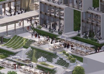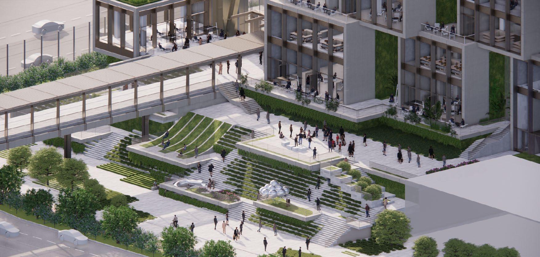 This landscape area not only connects the ground and Level 1 entrance but also serves as an exciting space. With terraces of varying sizes and heights, it offers versatile spaces for commercial and community activities. From hosting fashion shows on larger platforms to exhibiting art installations on smaller platforms, it provides opportunities for diverse events, including community market gatherings during holidays.