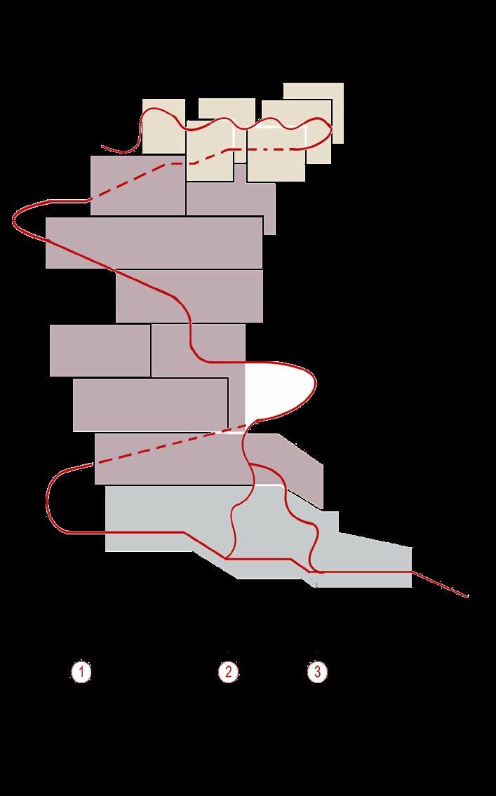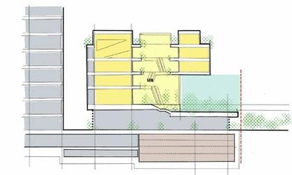 The main strategy is to link three key elevations together: Retail main entrance on L1+9.3 ; lower deck on +5.8; municipal linear park on GF + 0.00