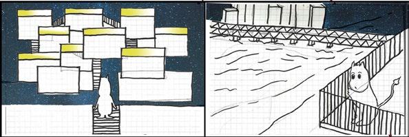 7. Mumin enjoied the beauty of the lake. He was seeing the boat, the long bridge as well as the illuminated city image in distance. How warm the night wind was.