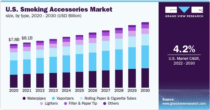 The high usage and demand of waterpipes and vaporizers due to their property of portability and ability of filtration as they can separate tar from herbs while being burned is contributing to market growth. The increasing usage of smoking accessories as they improve the quality of herbs after burning and provide a better smoking experience to the user is further driving the market for smoking accessories in the coming years. Moreover, increasing demand for alternative medicinal herbs to be inhaled as a healthy step is resulting in increased demand and use of smoking accessories thus driving the market.