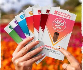 Shelf appeal meets premium burn. High Tea Wraps offer a standout alternative to traditional blunt wraps, made from a unique blend of yerba mate, cacao, chamomile, and hemp—with no tobacco or nicotine in sight. Available in eight well-balanced flavors like Green Apple, Royal Sweet, and Mad Melon, these wraps are smooth-burning, slow-smoking, and eye-catching in resealable, shelfready pouches. Retailers will appreciate the crossover appeal: they resonate with both wellness-minded smokers and blunt loyalists looking for something cleaner. With consistent supply, 5-wrap packs, and pre-rolled cones also in the lineup, High Tea brings variety without the headache. If you’re looking to expand your wrap selection beyond the usual suspects, this one checks all the right boxes.