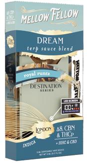 Mellow Fellow’s 0.5 mL THCh disposables feature a sleek design, a curated selection of popular strains, and a cannabinoid blend built for impact. THCh—short for tetrahydrocannabihexol—is a rare, naturally occurring cannabinoid believed to be up to ten times more potent than Delta-9 THC. It delivers a fast-onset, euphoric experience that’s gaining traction among high-tolerance users looking for something new and noticeably stronger. Available in rotating sativa, hybrid, and indica varietals like ZaZa, Pineapple Express, and White Truffle, each disposable comes batch-tested and ready to go in a clean, 6-count display box. At 0.5 mL per unit with added CBD, CBG, and CBN for a balanced effect, this line hits the sweet spot for customers chasing both novelty and potency— without the learning curve of concentrates.